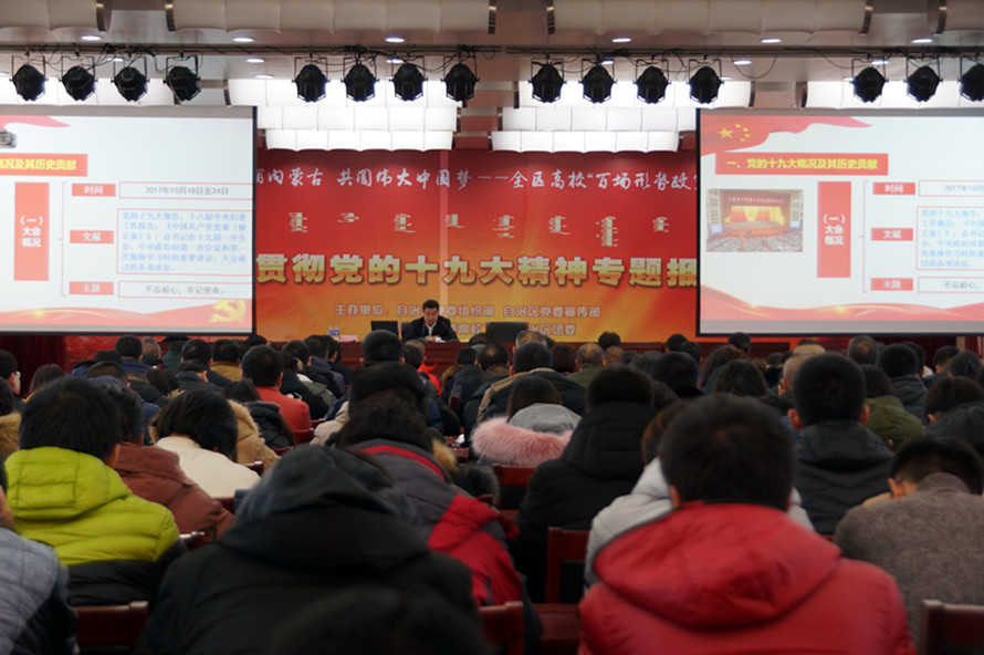 12月4日下午,自治區(qū)宣講團(tuán)成員、發(fā)改委原巡視員鐵鋼走進(jìn)內(nèi)蒙古大學(xué)交通學(xué)院作形勢政策報(bào)告,面向師生宣講黨的十九大精神。學(xué)院領(lǐng)導(dǎo)、副科級(jí)以上干部、教師和學(xué)生代表近400人參加了報(bào)告會(huì)。