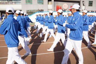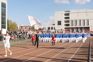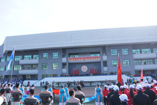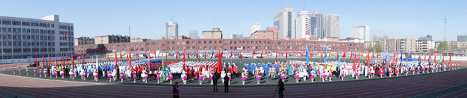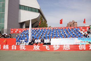學(xué)院領(lǐng)導(dǎo)與學(xué)生方隊(duì)、觀眾和志愿者合影 | |
