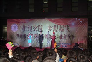 學(xué)院院長柴金義,常務(wù)副院長董平,黨委副書記、紀(jì)委書記白托婭,副院長孫恒、武鈞,黨委委員、科研處處長李宏,黨委委員、教務(wù)處處長趙志蒙出席晚會(huì)。學(xué)院各系、各處室負(fù)責(zé)人,班主任、新生等1500余人觀看了晚會(huì)。