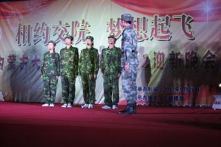 姿態(tài)曼妙的頂碗舞拉開了晚會(huì)序幕,場面盛大的晚會(huì)以歌曲《我的未來不是夢》《站起來》,詩朗誦《獻(xiàn)給2012的學(xué)子》,舞蹈《kill the beats》,小品《軍訓(xùn)小趣》表現(xiàn)了“等待,夢想的花開”的主題;以歌曲《想你的夜》,樂器演奏《軍港之夜》,舞蹈《碧波孔雀》,歌曲《護(hù)花使者》,舞蹈《kiss fire》表現(xiàn)了“舞動(dòng),美麗的青春”的主題;以歌曲《我的父親是牧馬人》,小品《推銷》,街舞《舞動(dòng)青春》,相聲《姑娘小伙別這樣》表現(xiàn)了“譜寫,騰飛的贊歌”的主題,晚會(huì)在軍樂團(tuán)的演奏、學(xué)生聯(lián)合會(huì)合唱的《走向復(fù)興》《中國,中國,鮮紅的太陽永不落》圓滿落下了帷幕。眾多的優(yōu)秀節(jié)目,讓大家感受到了青春澎湃的力量,給2012級(jí)新生留下了美好的回憶。同學(xué)們的表演精彩紛呈,觀眾掌聲熱烈,兩個(gè)小時(shí)的晚會(huì)始終洋溢著熱烈祥和的氛圍。