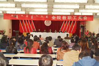 大會由學(xué)院常務(wù)副院長董平主持。學(xué)院黨委副書記、紀委書記白托婭,副院長孫恒,副院長武鈞,黨委委員、科研處處長李宏,黨委委員、教務(wù)處處長趙志蒙出席會議,200多名教職工參加大會。