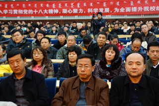 為了深入學習貫徹黨的十八大精神,把我校廣大師生員工思想和行動統(tǒng)一到黨的十八大精神上來,把力量凝聚到實現黨的十八大確定的各項任務上來,努力辦好人民滿意的教育,推動學??茖W發(fā)展,學校于2012年11月20日下午3:00在學術會議中心9號會議室召開全校傳達貫徹黨的十八大精神干部大會。