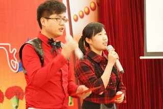 賈春雷、馮俊杰,學生趙娜等師生朗誦《同一個夢想》 |