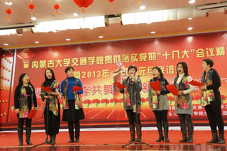院長柴金義致新年賀詞,他首先對全體教職工致以節(jié)日的問候,并總結了學院一年來取得的成績,代表學院黨政領導向辛勤工作的教職工表示衷心的感謝!他希望在新的一年里,我院教職工能夠繼續(xù)齊心協(xié)力,積極行動,認真貫徹落實十八大精神,努力為提升我院綜合實力而奮斗。