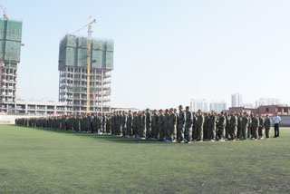 2013年8月25日上午8時,在學校副校長張吉維“按計劃進行” 的命令下,伴隨著莊嚴的國歌聲,學院2013級新生軍訓動員大會在南校區(qū)操場上正式舉行。