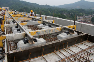 8月中下旬,在開展黨的群眾路線教育實(shí)踐活動(dòng)中,為了解用人單位的服務(wù)需求,特別是在高速鐵路建設(shè)管理及人才使用的實(shí)際情況下,學(xué)院柴金義院長、董平常務(wù)副院長利用小學(xué)期之際,選擇中交二公局承建的貴州至廣州高鐵建設(shè)項(xiàng)目進(jìn)行調(diào)研考察,重點(diǎn)考察貴廣高鐵GGTJ—5標(biāo)段隧道無砟軌道施工工地。