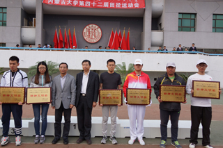 與會(huì)領(lǐng)導(dǎo)為獲得教工團(tuán)體前三名的單位頒獎(jiǎng) |