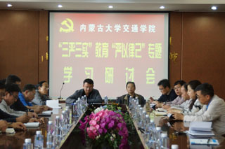 為深入貫徹自治區(qū)黨委組織部《關(guān)于認(rèn)真落實(shí)“四個(gè)一”要求,深入扎實(shí)開(kāi)展專題學(xué)習(xí)研討的通知》(內(nèi)組通字〔2015〕28號(hào))和《內(nèi)蒙古大學(xué)關(guān)于認(rèn)真做好嚴(yán)以律己專題學(xué)習(xí)研討會(huì)的通知》(內(nèi)大黨組發(fā)〔2015〕11號(hào))的有關(guān)精神,筑牢“三嚴(yán)三實(shí)”思想根基,進(jìn)一步增強(qiáng)全院黨員干部思想和行動(dòng)自覺(jué)性,9月15日下午,在交通樓A439會(huì)議室,學(xué)院黨委召開(kāi)“三嚴(yán)三實(shí)”教育“嚴(yán)以律己”專題學(xué)習(xí)研討會(huì)。