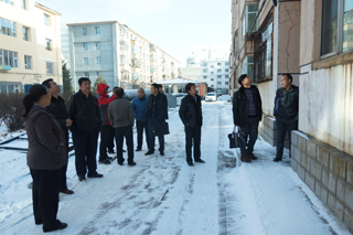 2015年12月14日,由呼市住房保障和房屋管理局老舊小區(qū)改造辦公室、玉泉區(qū)社區(qū)辦、博洋天成設(shè)計院房屋結(jié)構(gòu)設(shè)計公司相關(guān)負(fù)責(zé)人組成調(diào)研組來我院家屬區(qū)實地考察老舊小區(qū)改造工程項目進(jìn)展情況以及小區(qū)申請的增加改造項目。學(xué)院后勤保衛(wèi)處、家屬區(qū)管委會和小區(qū)改造施工方內(nèi)蒙古盈利宏建筑安裝有限責(zé)任公司主要負(fù)責(zé)人陪同考察。