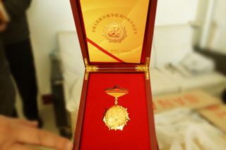 圖為中央軍委頒發(fā)的“紀(jì)念中國人民抗日戰(zhàn)爭暨世界人民反法西斯戰(zhàn)爭勝利70周年”金質(zhì)紀(jì)念章