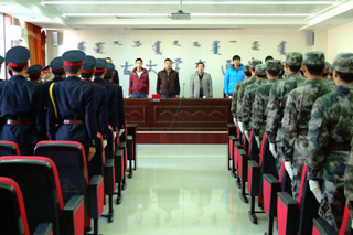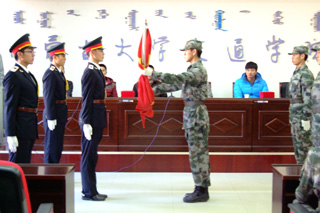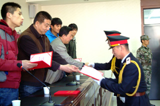 本次換屆儀式國旗班副班長趙國友做主持,第九屆國旗班代表任正義做了宣誓。在儀式上對(duì)第八屆國旗班優(yōu)秀干事頒發(fā)了優(yōu)秀干事榮譽(yù)證書并對(duì)他們表示祝賀。第八屆國旗班班長喬建偉對(duì)第八屆國旗班在一年的工作中的成績和不足做了回顧和總結(jié),第九屆國旗班班長劉江對(duì)新一屆國旗班作了未來規(guī)劃。