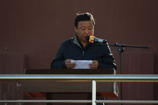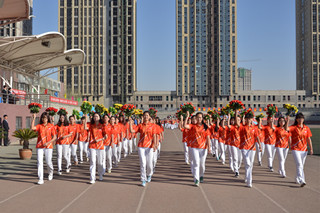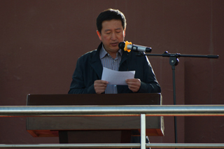 莊嚴(yán)的升國旗儀式后,學(xué)院黨委副書記、紀(jì)委書記白托婭致開幕詞。她代表學(xué)院黨政領(lǐng)導(dǎo)對本次運(yùn)動會的順利召開表示熱烈的祝賀!對前來參加學(xué)院運(yùn)動會開幕式的學(xué)校領(lǐng)導(dǎo)、來賓、老師和同學(xué)們表示熱烈的歡迎!向參加本次運(yùn)動會的運(yùn)動員、裁判員和工作人員致以誠摯的問候!她說,一年一度的田徑運(yùn)動會已經(jīng)成為校園生活的重要組成部分,是對全院師生員工運(yùn)動水平的一次檢閱,是對學(xué)院群眾性體育工作成果的一次檢驗,也是對廣大師生員工競爭意識、團(tuán)隊精神、頑強(qiáng)意志的一次考驗,更是全院師生員工精神風(fēng)貌的一次全面展示。在十八屆三中全會上中央提出,學(xué)校要強(qiáng)化體育課和課外鍛煉,努力促進(jìn)青少年身體健康,強(qiáng)健體魄。同學(xué)們的體質(zhì)與健康事關(guān)國家和民族的未來,廣大青年學(xué)生應(yīng)該積極響應(yīng)團(tuán)中央的號召,走下網(wǎng)絡(luò)、走出宿舍、走向操場,做強(qiáng)健體魄,健康生活的倡導(dǎo)者。學(xué)院將以此次運(yùn)動會為契機(jī),繼續(xù)廣泛開展“陽光體育”,不斷加強(qiáng)校園體育文化建設(shè),營造人人關(guān)心、人人參與體育活動的氛圍,以健康的體魄和飽滿的熱情投入到學(xué)院各項事業(yè)的建設(shè)中來。相信全體運(yùn)動員一定會本著“重在參與”的奧林匹克精神,在本屆運(yùn)動會上賽出風(fēng)格、賽出水平、賽出成績,爭取體育競賽和精神文明的雙豐收。最后,預(yù)祝本屆運(yùn)動會圓滿成功!  |  | 學(xué)院黨委副書記、紀(jì)委書記白托婭致開幕詞 | 鮮花方隊 |