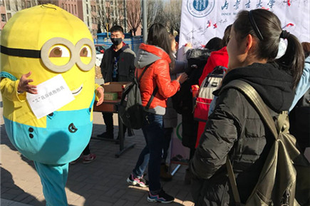 學(xué)生們統(tǒng)一著裝,系上紅絲帶,扮上卡通萌娃形象,通過學(xué)生擁抱、握手、現(xiàn)場(chǎng)簽名、知識(shí)展板、宣傳資料發(fā)放等活動(dòng)形式,從交通樓到學(xué)生餐廳,從主樓到宿舍樓,同學(xué)們和萌娃一路簇?fù)怼⒁宦沸麄?,向南校區(qū)學(xué)生廣泛宣傳艾滋病的傳播途徑、如何預(yù)防以及如何對(duì)待艾滋病患者的知識(shí)。