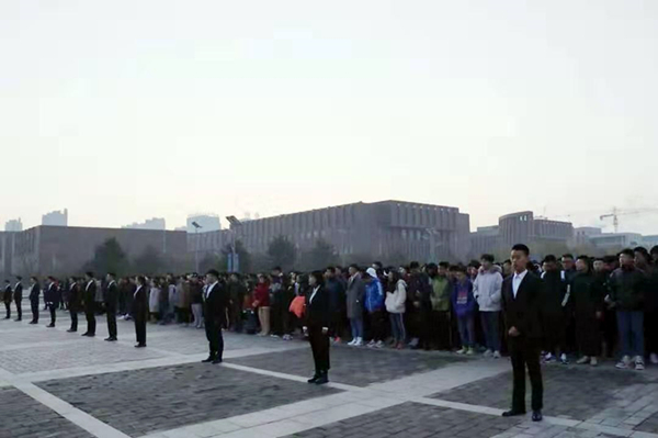 為進(jìn)一步加強(qiáng)愛國主義教育,引導(dǎo)學(xué)生以更加飽滿的精神狀態(tài)踐行科學(xué)發(fā)展觀,堅(jiān)定理想信念,不忘初心,報效祖國,11月4日早晨7點(diǎn),交通學(xué)院大一大二全體學(xué)生在主樓前舉行升旗儀式。