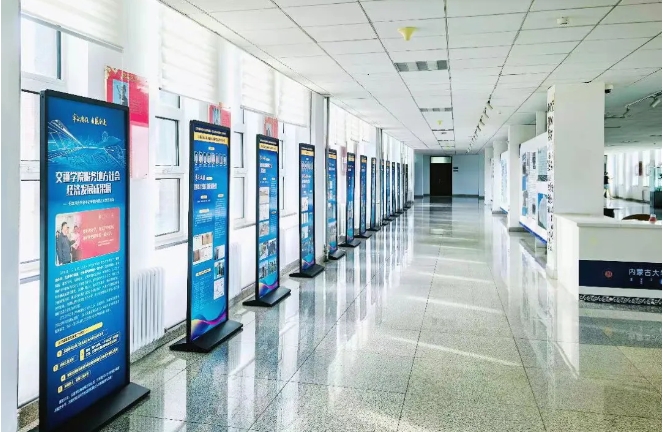 展區(qū)位于交通樓三樓校史展廳長廊,共計14塊展板。展覽以服務北疆基礎設施工程為主分為5大系列,分別是:凍害診斷與防治技術系列;橋梁工程系列;面向“兩個屏障、一個橋頭堡”的智慧交通、交通安全和口岸物流研究系列;智能交通載運裝備與寒區(qū)機械裝備安全服役關鍵技術系列;環(huán)境巖土、道路工程系列。集中展示了我院近五年來在團隊建設、科技創(chuàng)新、社會服務、成果轉(zhuǎn)化等方面取得的顯著成效。展覽將持續(xù)數(shù)月時間。